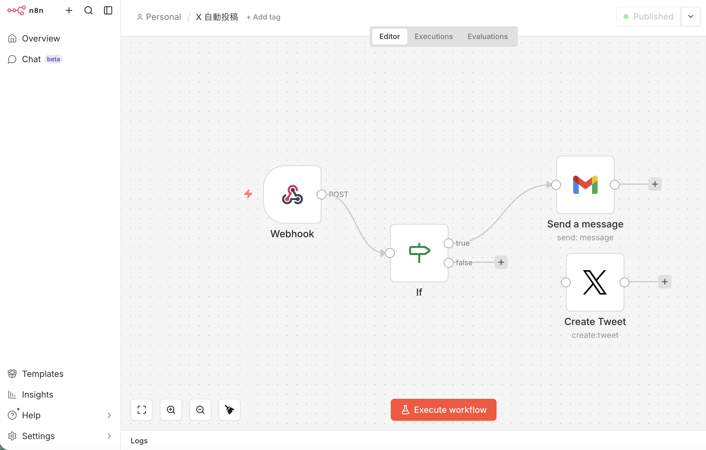 n8nが導入できればいろいろ自動化ができるとネットでみたので、目標はWordPressの記事公開と同時にX(Twitter)に自動投稿すること。ただ有料APIが必要だったみたいなのであきらめましたが、アイキャッチを自動でもってきたり、H2の下に画像配置させたり、Gmailやその他多彩なアプリなどと組み合わせられるのでほんとアイデア勝負。設定さえ乗り越えれば、あとは全自動になります。「設定さえ乗り越えれば・・・・」というのが今回の記事のテーマで、これが想定以上に大変でした。